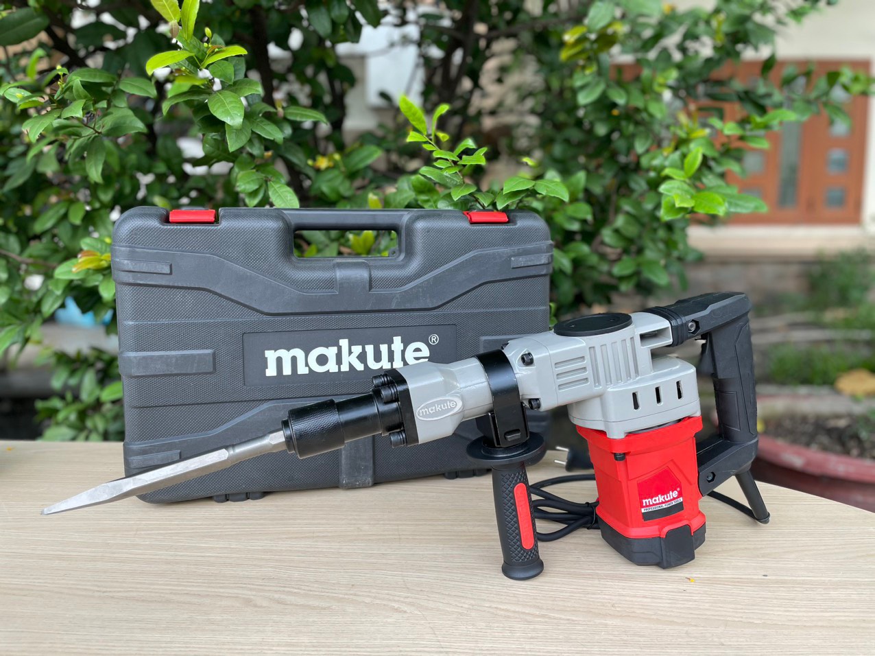 Phụ kiện đi kèm: 2 mũi đục (tròn và dẹp), 1 cặp than, mỡ bò cao cấp, khóa cố định máy.