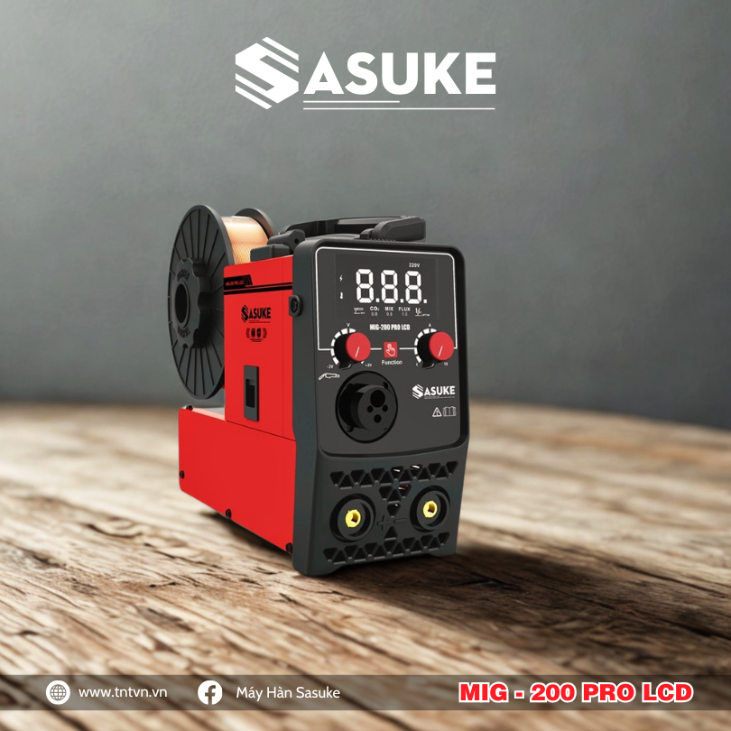 SASUKE MIG-200 PRO LCD – Đáp ứng mọi nhu cầu hàn MIG và hàn que với độ chính xác cao, tiện lợi, tiết kiệm điện năng, và độ bền vượt trội.